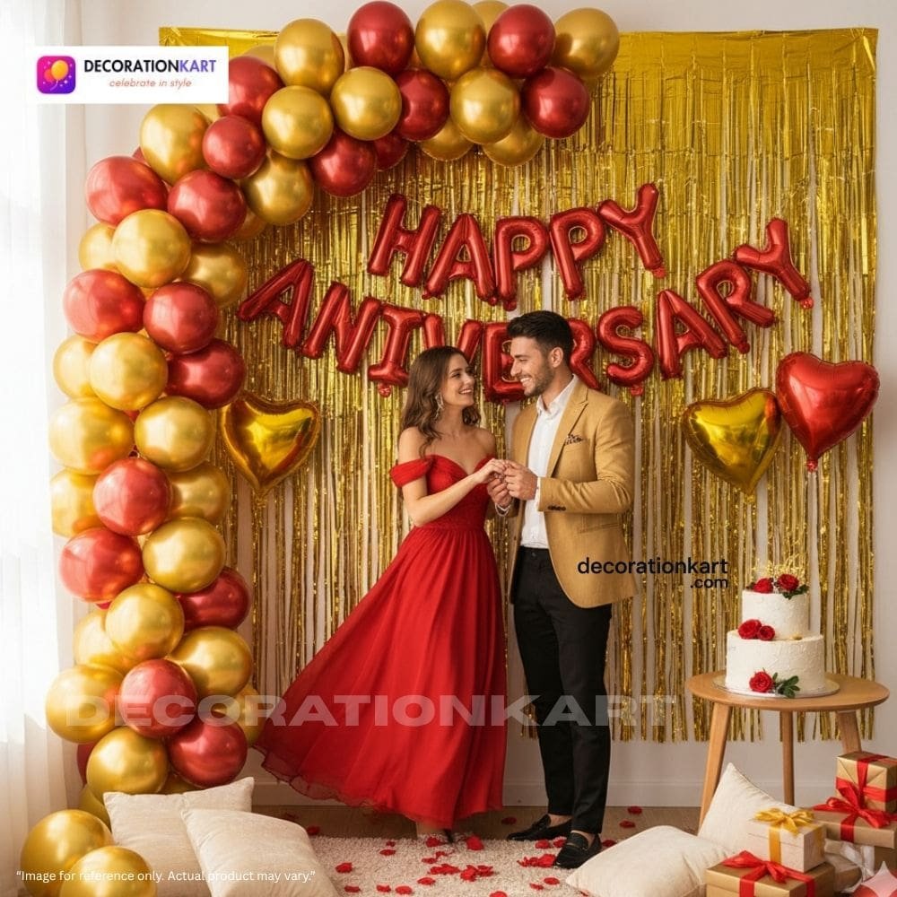 - This combo is versatile enough for all anniversary themes — from first-year celebrations to golden jubilees. The red-golden-yellow palette is especially popular for cheerful daytime events, hotel room surprises, and elegant home gatherings. It adapts beautifully to both indoor and outdoor settings, ensuring your décor looks polished and professional.