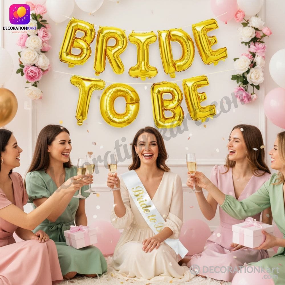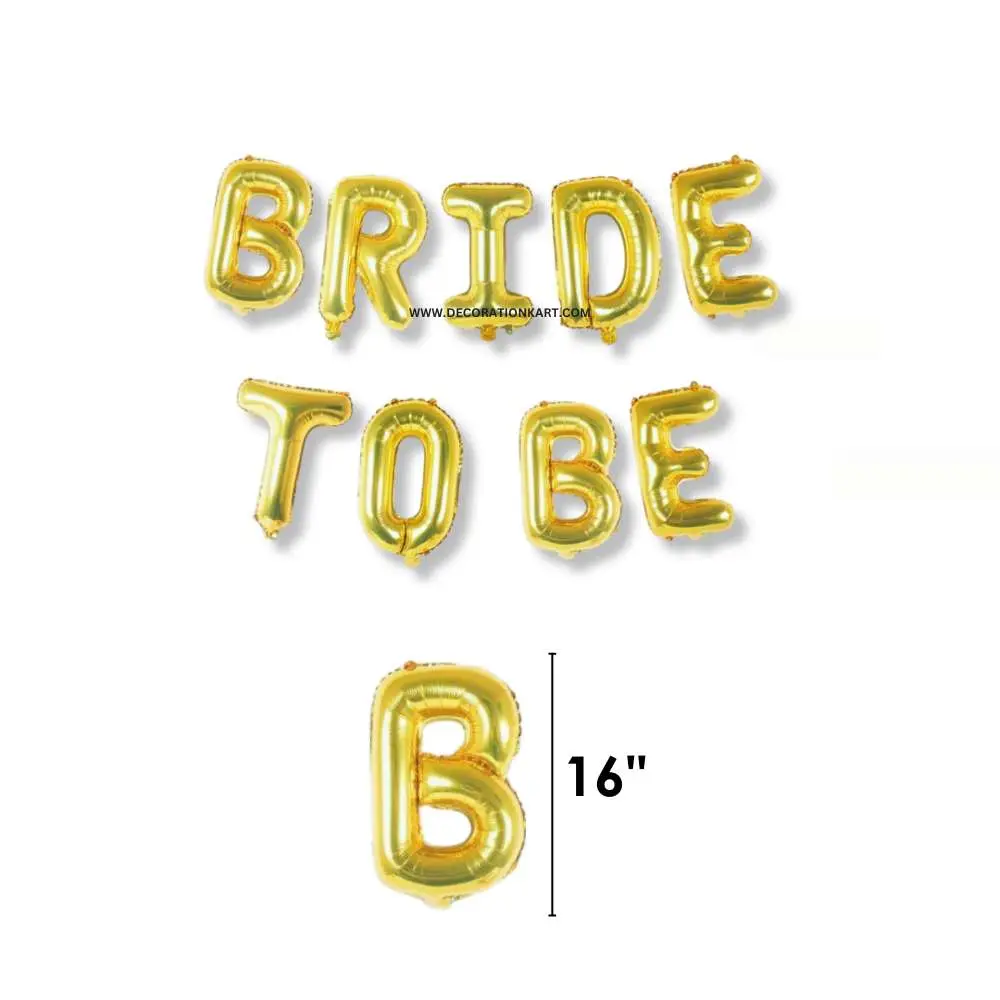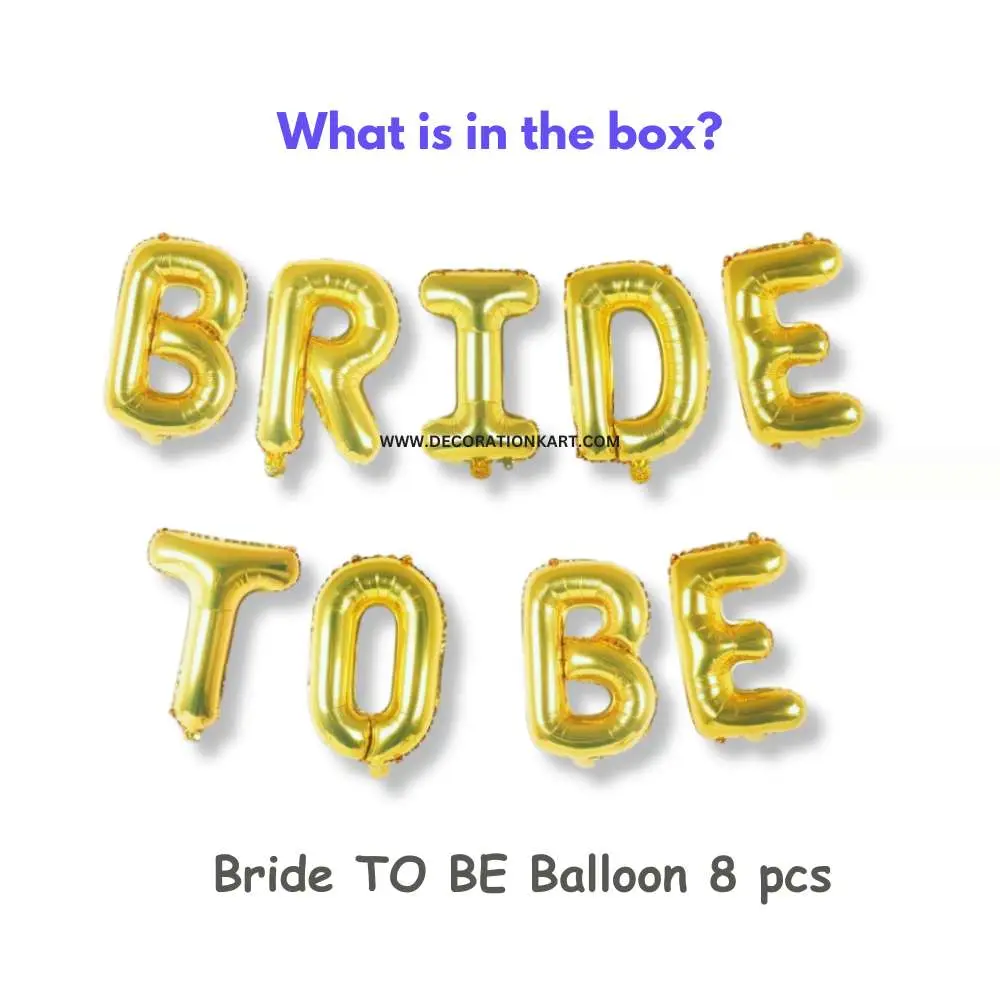 - When it comes to bridal celebrations, décor plays a huge role in setting the mood. DECORATIONkart BRIDE TO BE Golden Foil Balloons are designed to make your bachelorette or bridal shower unforgettable. Crafted with premium quality foil and finished in a bold metallic Golden shine, this balloon set spells out “BRIDE TO BE” in striking letters. Whether you’re hosting an intimate gathering or a grand pre‑wedding party, these balloons instantly create a glamorous backdrop that guests will love.