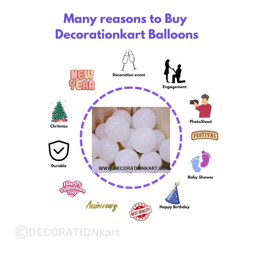 - CHROME WHITE BALLOONS FOR DECORATION – 50Pcs chrome white balloons for decoration. This large pack is perfect for creating a premium and elegant party setup. Ideal for weddings, anniversaries, birthdays, and baby showers. The glossy white chrome finish adds a luxurious touch to any theme.