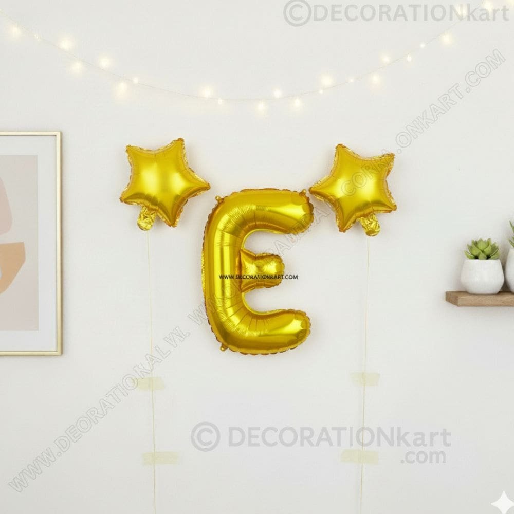 A stylish 3-piece balloon combo featuring one golden alphabet E (16 inch) and two golden stars (9 inch each) β perfect for adding sparkle to any celebration. - PREMIUM QUALITY MATERIAL: