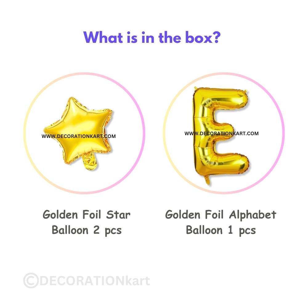 | Included Components | 1 Golden Alphabet "E" Balloon (16 inch), 2 Golden Star Balloons (9 inch each) |