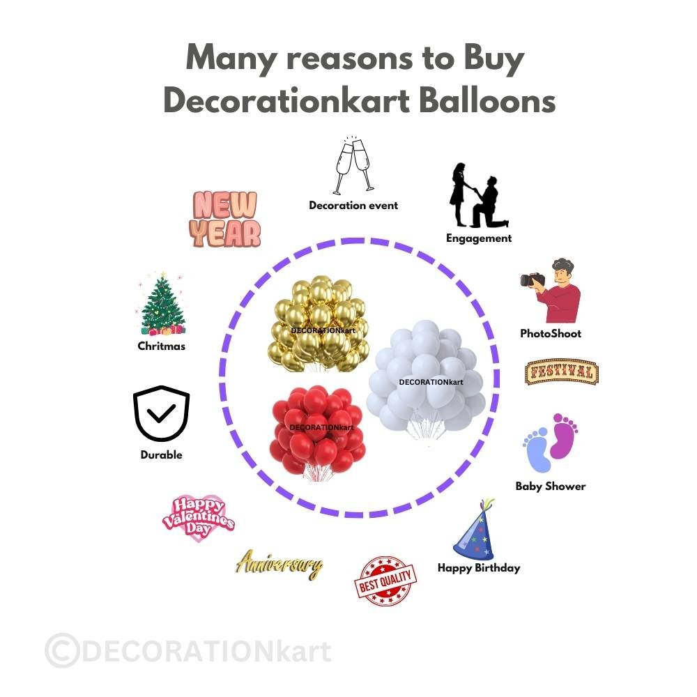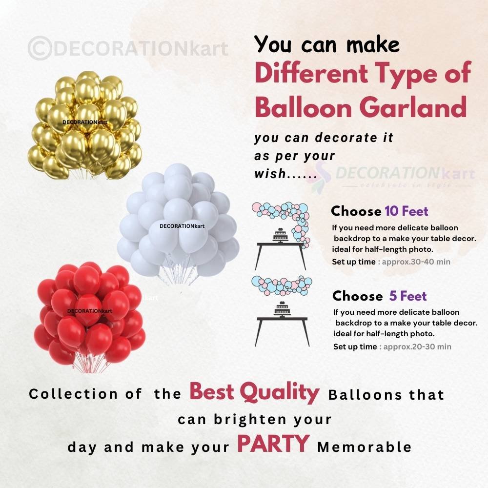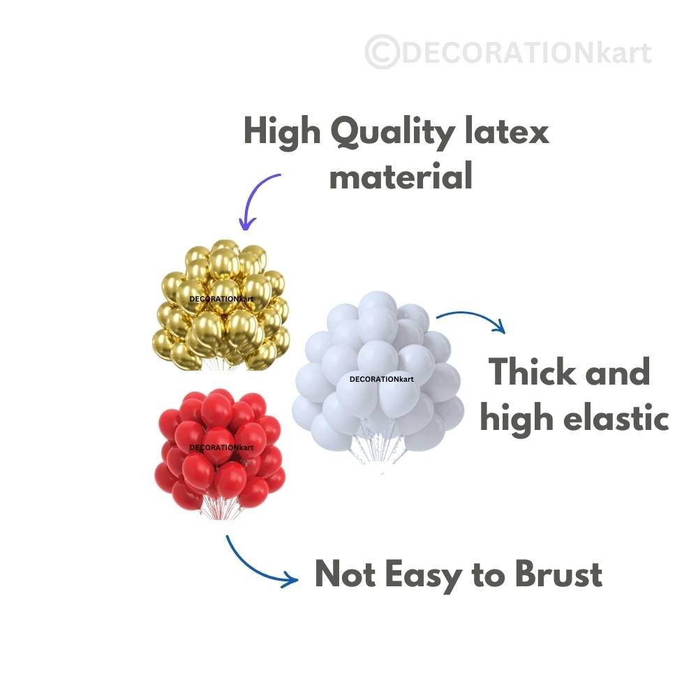This premium combo of 150 balloons โ 50 golden, 50 red, and 50 white โ adds a perfect blend of elegance, warmth, and purity to any celebration. Ideal for birthdays, anniversaries, or romantic events, these balloons help you create stunning garlands, photo backdrops, and festive centerpieces. - HIGH-QUALITY LATEX FOR DURABILITY & SAFETY: