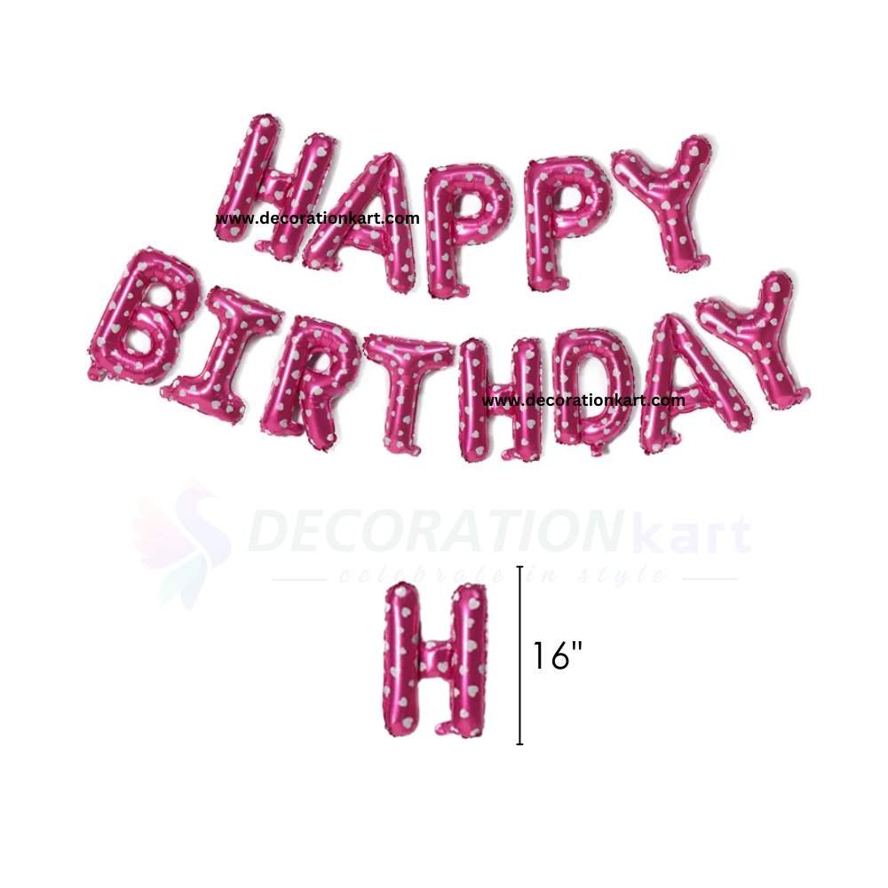 - Birthdays are all about joy, color, and unforgettable memories. DECORATIONkart HAPPY BIRTHDAY Pink Foil Balloons are designed to make your celebration shine with elegance and charm. Crafted with premium quality foil and finished in a glamorous metallic pink, this balloon set spells out “HAPPY BIRTHDAY” in bold, eye‑catching letters. Whether it’s a kids’ birthday, a milestone celebration, or a surprise party, these balloons create a stylish and festive backdrop.