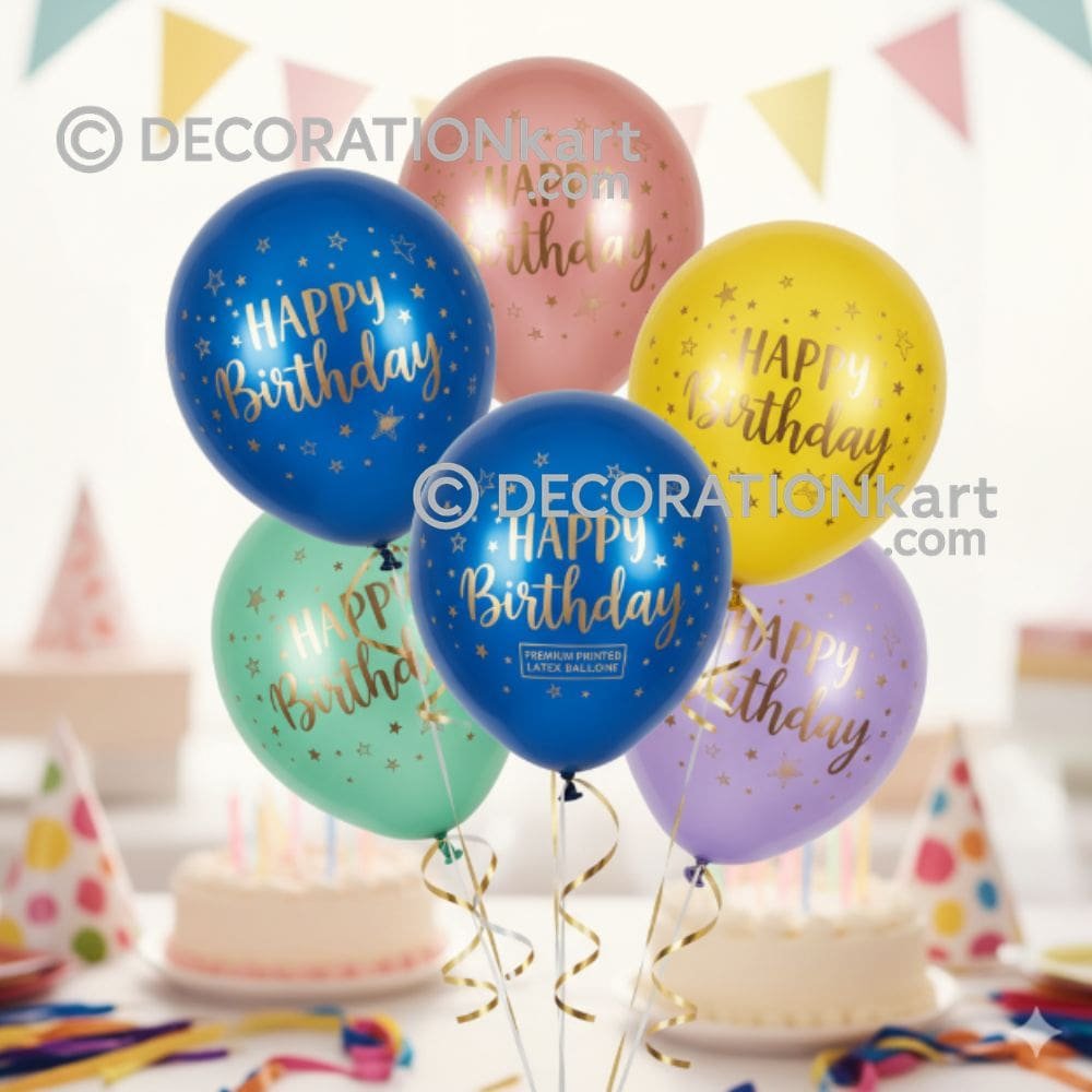 • 10 ร— Latex balloons printed with โ€œHappy Birthdayโ€ text