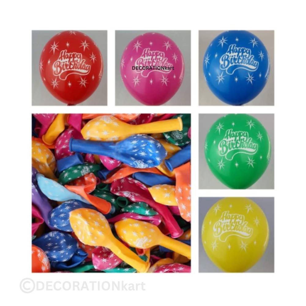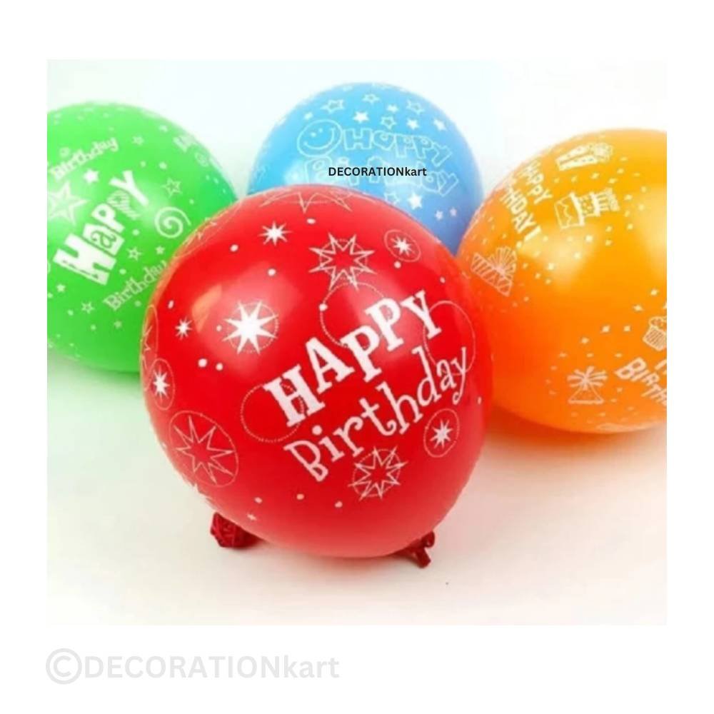 • HAPPY BIRTHDAY BALLOONS FOR DECORATION โ€“ 10Pcs printed latex balloons with โ€œHappy Birthdayโ€ text. Perfect for decorating homes, party halls, classrooms, or surprise setups for loved ones. These balloons instantly add a festive touch!