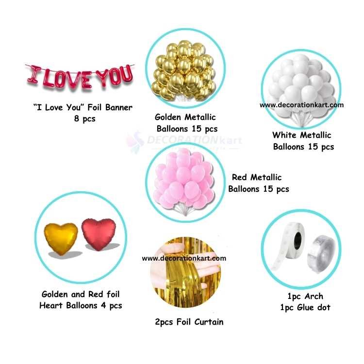 - Romance isn’t just about roses and chocolates—it’s about creating a space that speaks your heart. The DECORATIONkart 61 Pcs I LOVE YOU Couple Party Decoration DIY Kit is crafted to help you do just that. Whether you're planning a surprise proposal, celebrating an anniversary, or curating a dreamy date night, this kit transforms any room into a heartfelt expression of love.