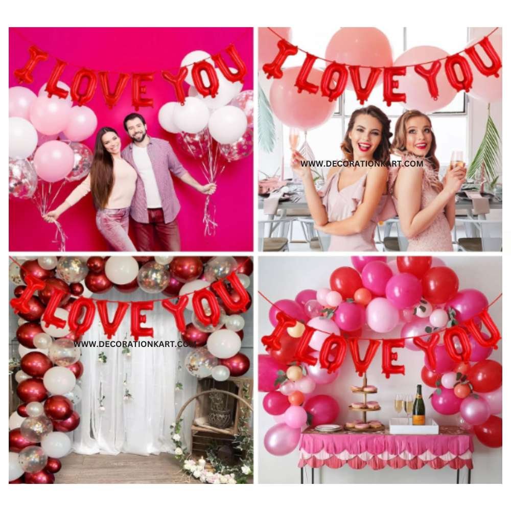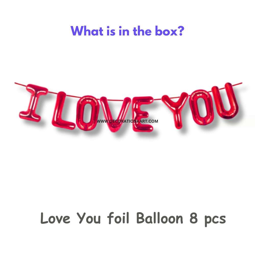 - Expressing love deserves décor that speaks from the heart. DECORATIONkart I LOVE YOU Red Foil Balloons are designed to make your romantic celebrations unforgettable. Crafted with premium quality foil and finished in a bold metallic red shine, this balloon set spells out “I LOVE YOU” in striking letters. Whether it’s a proposal, anniversary, or Valentine’s surprise, these balloons instantly create a dreamy backdrop that sets the mood for love.