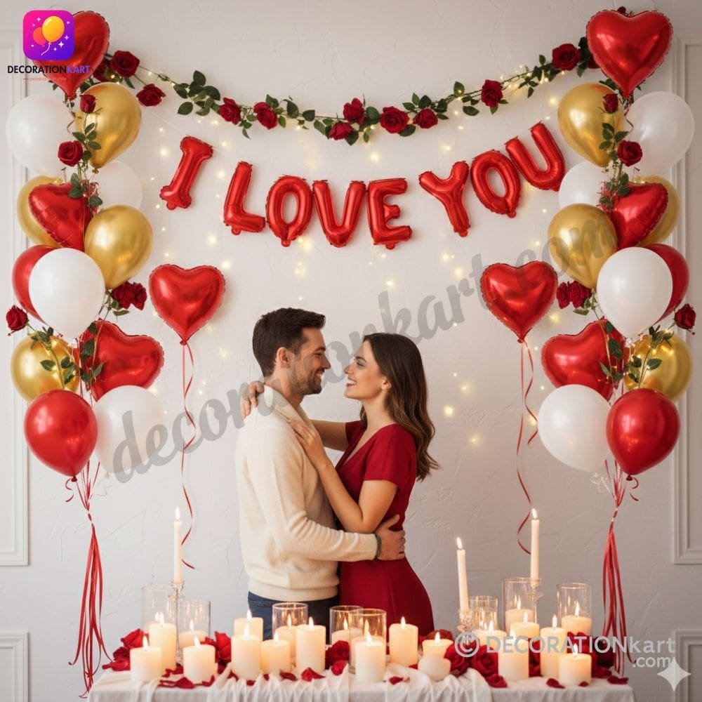 - Planning a romantic surprise can be stressful, but with DECORATIONkart, you get décor that is both stylish and easy to set up. These balloons can be arranged in multiple ways—hung on walls, tied with ribbons, or combined with fairy lights, rose petals, and heart‑shaped balloons. They are also perfect for creating a photo booth corner where couples can capture Instagram‑worthy memories.