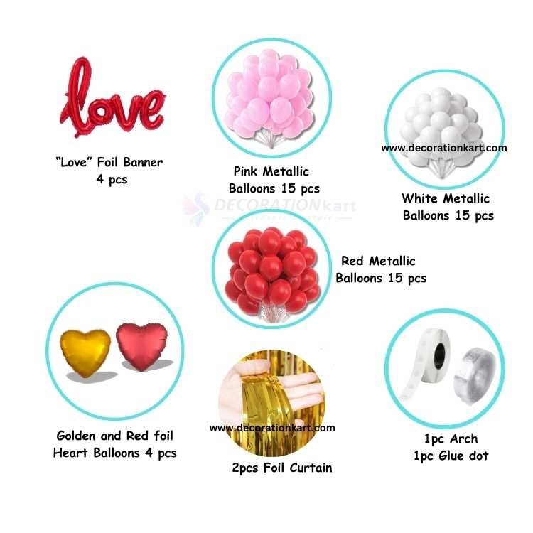 - Love is a feeling best expressed in moments, and this DECORATIONkart 57 Pcs LOVE Couple Party Decoration DIY Kit is designed to turn those moments into memories. Whether you're planning a surprise proposal, celebrating an anniversary, or curating a romantic evening, this kit transforms any space into a heartfelt celebration of affection and connection.