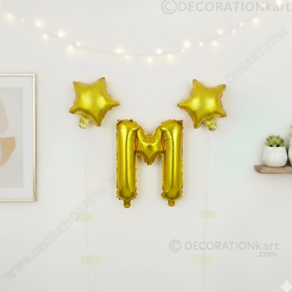 A stylish 3-piece balloon combo featuring one golden alphabet M (16 inch) and two golden stars (9 inch each) β perfect for adding sparkle to any celebration. - PREMIUM QUALITY MATERIAL:
