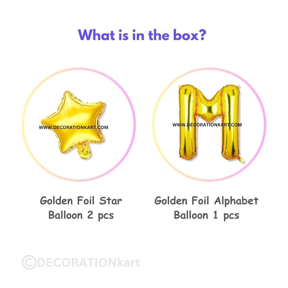 | Included Components | 1 Golden Alphabet "M" Balloon (16 inch), 2 Golden Star Balloons (9 inch each) |