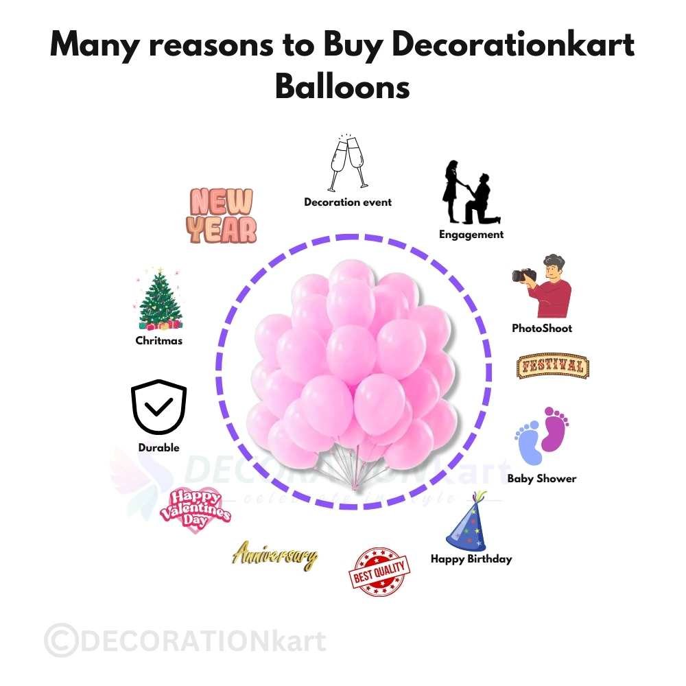 - EVERLASTING MEMORIES WITH THE BEST DECORATION SET FOR YOUR LOVED ONE :- Arrange the sweetest and most romantic surprise party for your loved one. Click memorable pictures in front of our pink balloons for decoration, and share your incredible moment by posting them on social media. This pink balloon decoration set is also the perfect combo for your milestone event celebration. Order now and make someone feel specialAbout the brand :