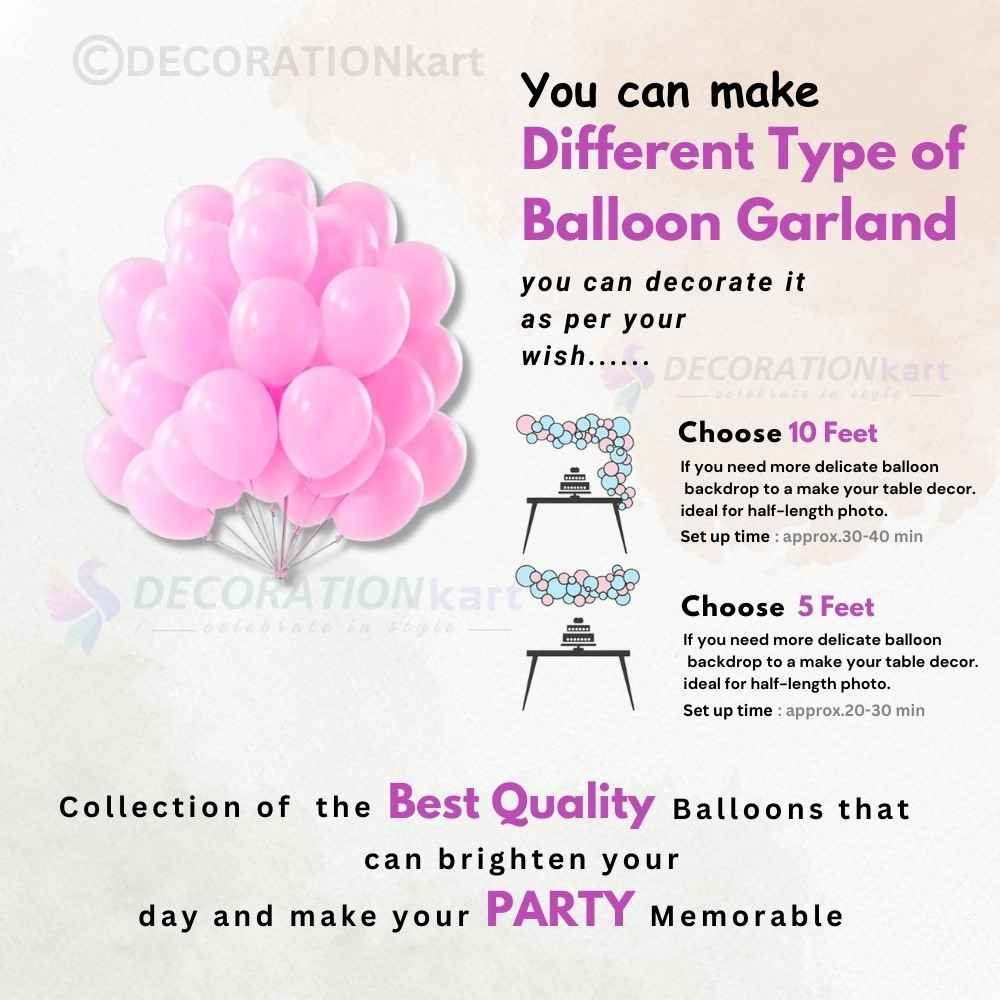 - PINK BIRTHDAY DECORATION SET :- The pink balloon kit is perfect for adding a touch of elegance and charm to any birthday celebration. This delightful set includes 50pcs, 100pcs, 150 pcs of pink balloons, making it a versatile choice for creating stunning party decorations. Whether you're hosting a princess-themed party, a baby shower, or simply want to add a pop of color to your event, these pink balloons are sure to impress.