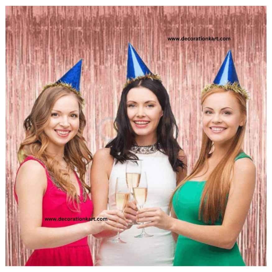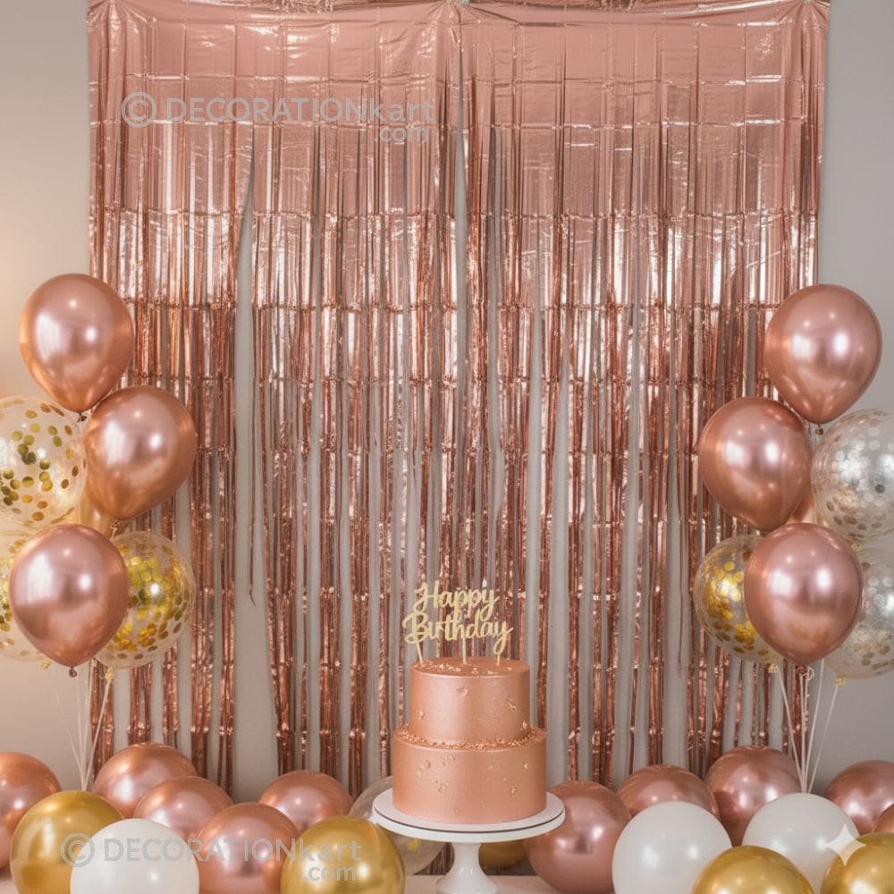 Transform any space into a sparkling celebration with the Rosegold Foil Curtain Pack of 2 by DecorationKart—the ultimate party decoration for a stylish and festive event! ✨🎊