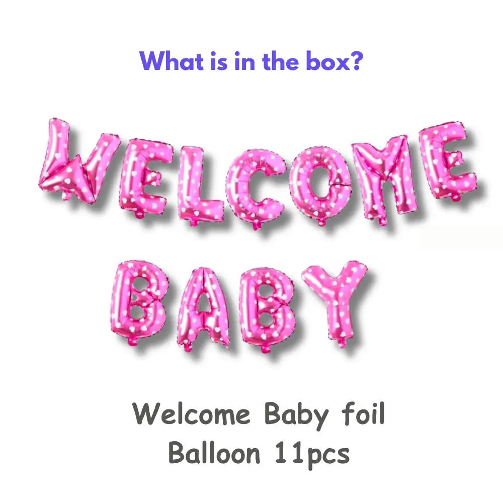 - When it comes to welcoming a newborn, décor plays a special role in creating warmth and joy. DECORATIONkart WELCOME BABY Pink Foil Balloons are designed to make your baby shower or welcome home celebration unforgettable. Crafted with premium quality foil and finished in a soft metallic pink shine, this balloon set spells out “WELCOME BABY” in bold, eye‑catching letters. Whether you’re hosting an intimate family gathering or a grand celebration, these balloons instantly create a festive backdrop that guests will admire.