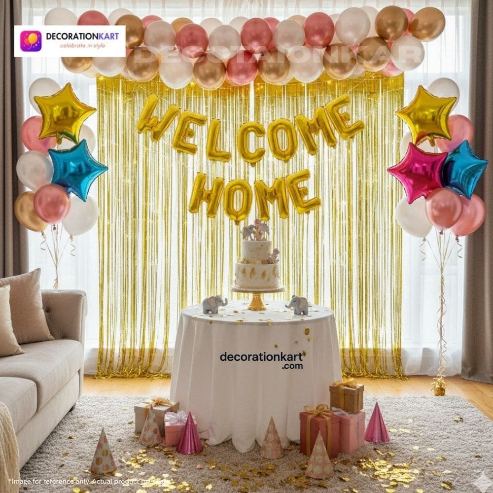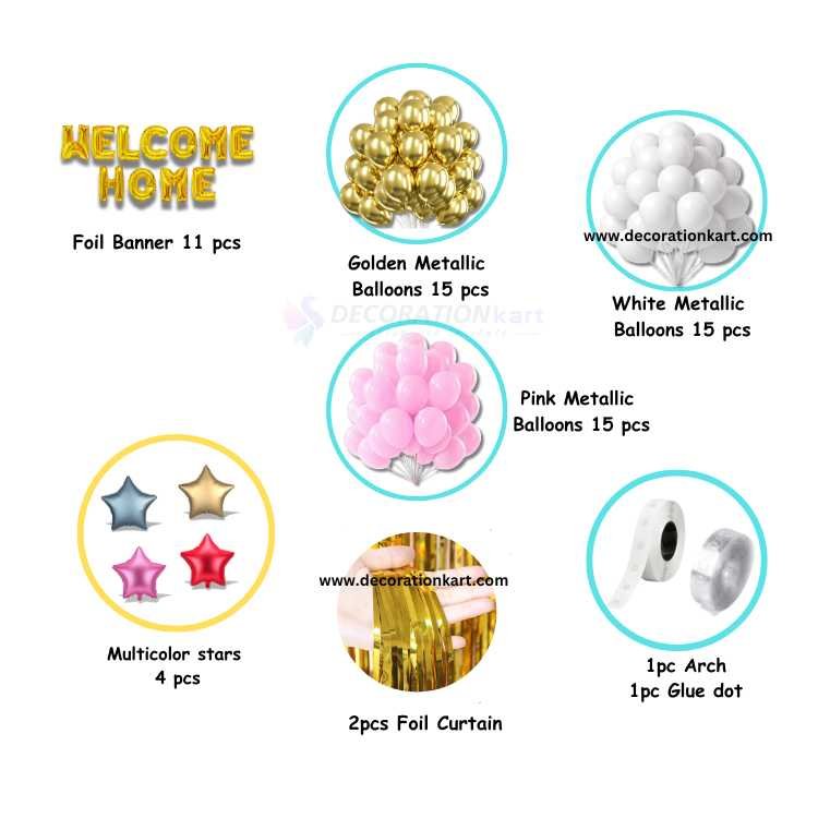 - A heartfelt welcome deserves more than a smile—it deserves a celebration that fills the room with warmth, color, and joy. The DECORATIONkart 60 Pcs WELCOME HOME Party Decoration DIY Kit is designed to transform any space into a vibrant, love-filled setting. Whether you're greeting a loved one after a long journey, celebrating a baby’s arrival, or hosting a surprise homecoming, this kit makes every moment unforgettable.