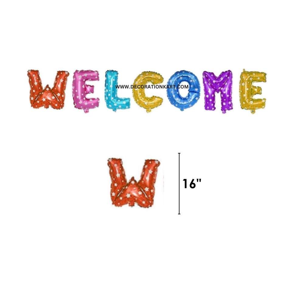 • Welcoming guests with style sets the tone for any celebration. DECORATIONkart WELCOME Multicolor Foil Balloons are designed to add vibrancy and joy to your special occasion. Crafted with premium quality foil and finished in bright metallic multicolor shades, this balloon set spells out “WELCOME” in bold, eye‑catching letters. Whether it’s a housewarming, baby shower, inauguration, or festive party, these balloons instantly create a cheerful backdrop that makes everyone feel special.