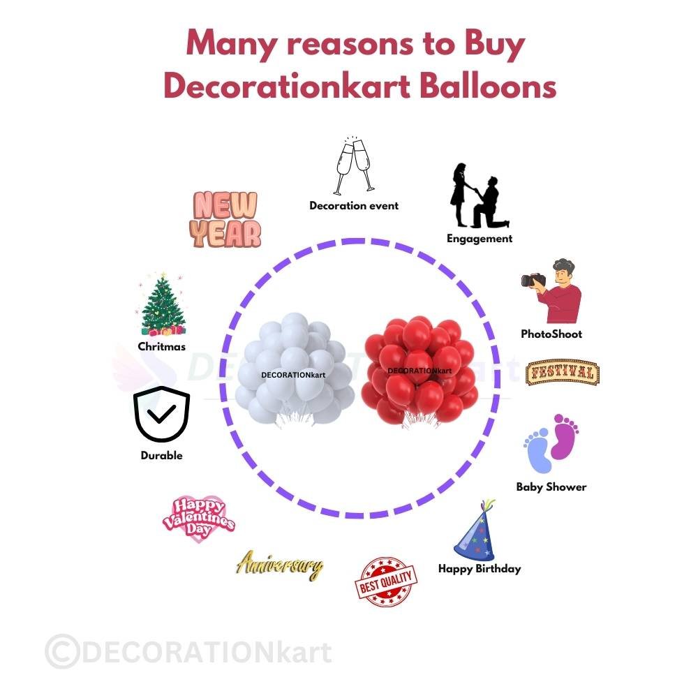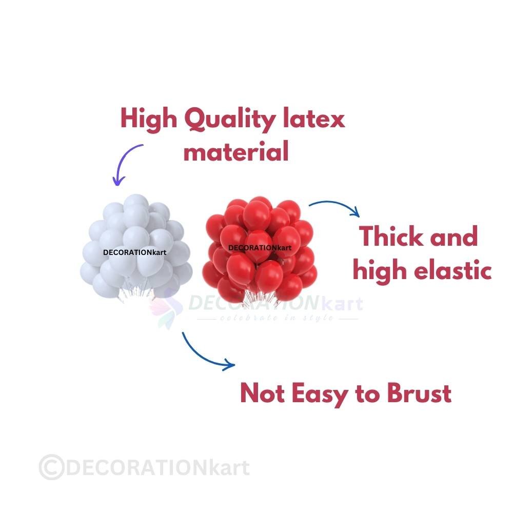 This vibrant combo of 50 red and 50 white metallic balloons adds a romantic and elegant touch to any celebration. Whether you're decorating for a birthday, anniversary, or baby shower, these balloons help create stunning garlands, dreamy backdrops, or festive table arrangements. - PREMIUM LATEX FOR DURABILITY & SAFETY: