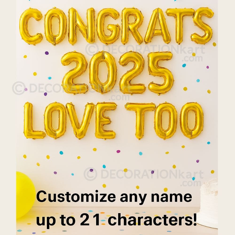 Create a personalized party vibe with DECORATIONKART’s Custom Golden Foil Balloons – spell any name, word, or number (up to 21 characters) using elegant 16-inch golden balloons. Perfect for birthdays, anniversaries, baby showers, and more. Made from premium aluminium foil, these balloons are easy to inflate, reusable, and add instant charm to any celebration.